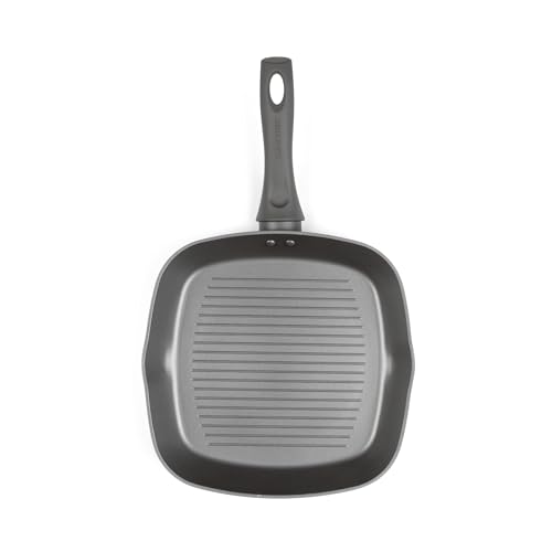 Crealys 529426 Poêle à griller en aluminium forgé 24 x 24 cm Gamme GRANITY - Revêtement intérieur anti-adhésif effet pierre sans PFOA - Grill à viande Tous feux dont Induction