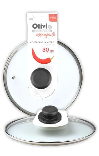 IPEA Couvercle pour Poêle ou Casserole en Verre Trempé – 16/18 / 20/22 / 24/26 / 28/30 cm – Transparent Rond Universel avec Bouton pour Poêles et Casseroles Cuisine – Compatible Lave-Vaisselle