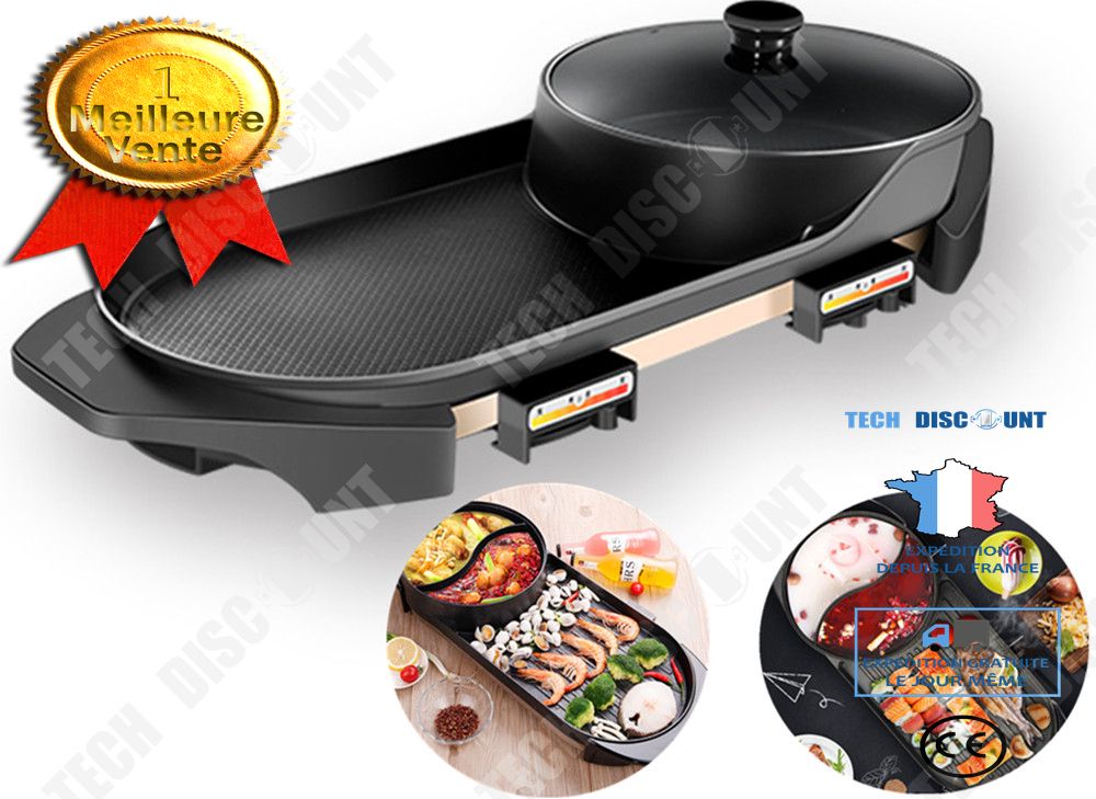 Poêle Électrique Ronde Antiadhésive Sans Fumée, Avec Pot Chaud Et Gril - Chauffage Rapide, Nettoyage Facile, Multifonction