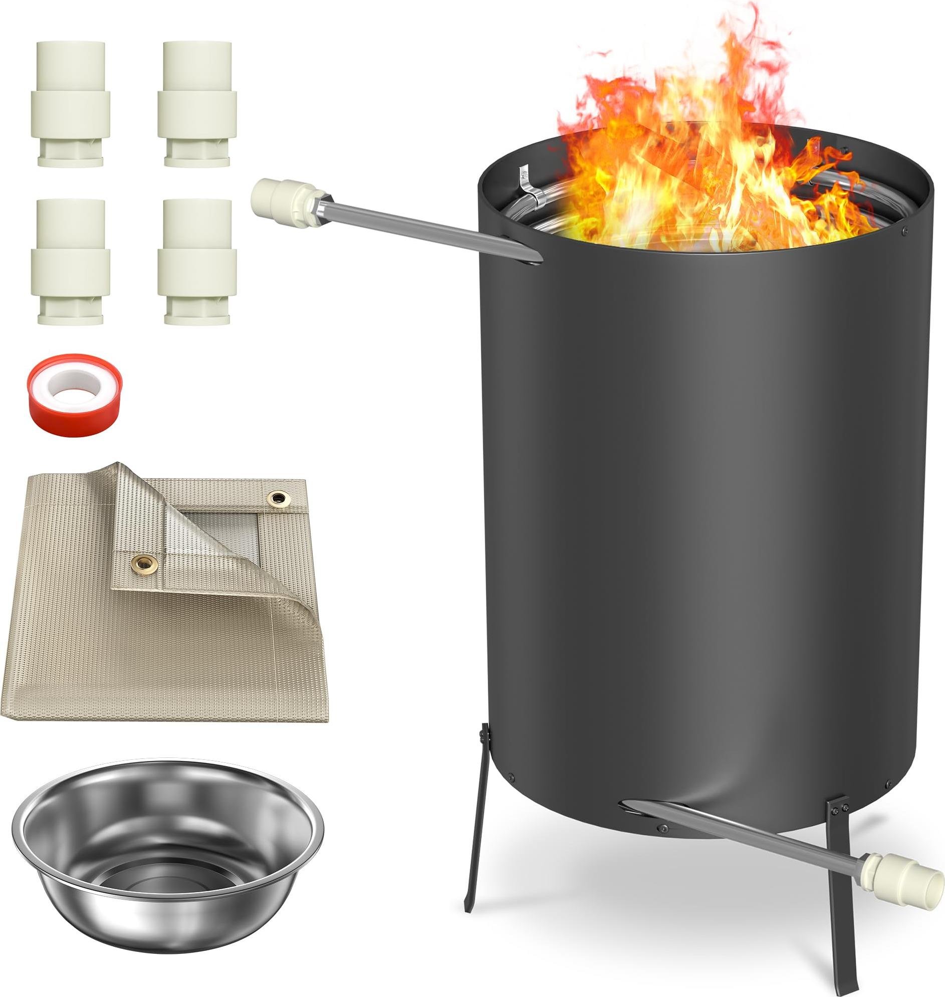 YUENFONG Chauffage au bois pour piscine 1 kit Chauffage pour piscine avec poêle à bois Baril à bois en acier inoxydable Chauffage pour piscine Chauffages pour piscines Bain nordique Jacuzzi Raccords 32/38 mm, noir