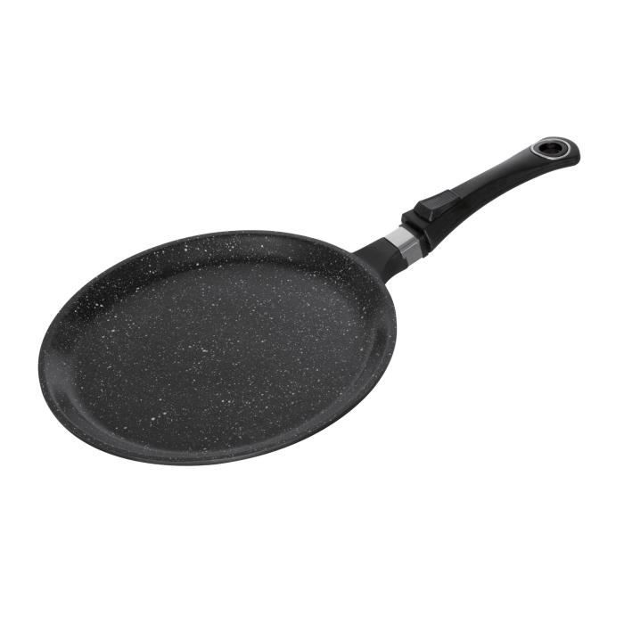 Poêle à crêpes Ø 28 cm Façon pierre - PRADEL EXCELLENCE - Gamme PREMIUM - Compatible tous feux dont induction. Manche amovible.