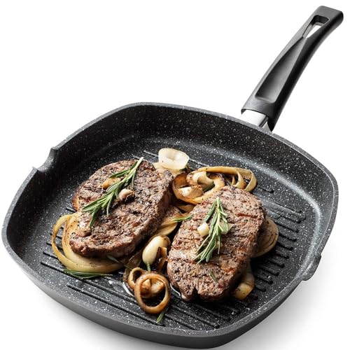Shally Dogan Poêle à frire plaque de cuisine antiadhésive 28 cm adapté à induction poignée Soft Touch en aluminium moulé sous pression grille rectangulaire (28 cm)