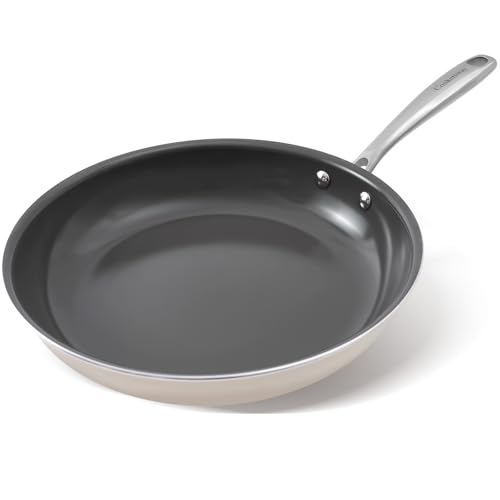 MasterPRO ARGENT 3 - Poêle à frire 30 cm à 3 couches - Acier inoxydable - Revêtement céramique ILAG - SANS PFAS, PFOA, PTFE - 3 couches - Sécurité induction et four