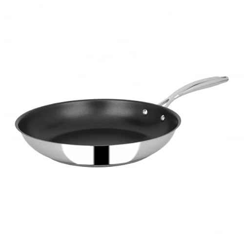 Sitram 715065 Poêle en Acier Inoxydable Triply Ø 28 cm - Revêtement Nid d'Abeille Anti-Adhésif et Anti-rayures, sans PFOA - Tous Feux dont Induction, Gris Inox