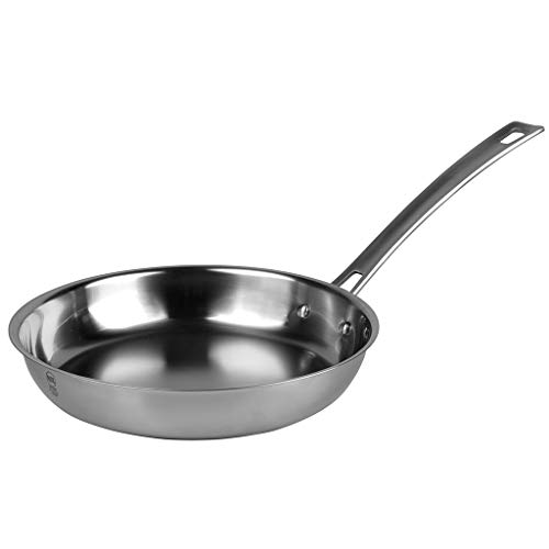 Poêle Inox triply Gamme RAPSODY diam. 20 cm H 4.5 cm Avec manche en inox riveté Intérieur satiné, finition extérieure miroir Epaisseur corps 2 mm Tous fe