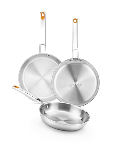 BRA Efficient Inox Triply Lot De 3 Poêles De 20-24-26 Cm, Acier Inoxydable 18/10, Sans Revêtement Antiadhésif, Triple Fond Diffuseur Forgé, Sans Pfoa, Manche Riveté