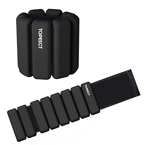 TOPESCT Lot de 2 poids de poignet réglables (0,5 kg chacun) | Bracelet de poids portable pour poignet et cheville pour yoga, danse, barre, pilates, cardio, aérobic, marche (rose) (0,9 kg/chaque, noir)