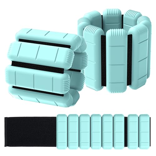 TOPESCT Lot de 2 poids portables pour poignet et cheville (0,5 kg/0,9 kg chacun),bracelet lesté réglable pour la musculation,la marche,la course,le pilates,le jogging,le yoga (Turquoise, 2lbs/each)