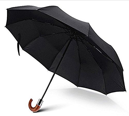 Bescar SpyShop Parapluie de voyage compact unisexe classique à ouverture automatique et résistant au vent - Parapluie de voyage pliable et anti-UV - Poignée en bois incurvée - Noir