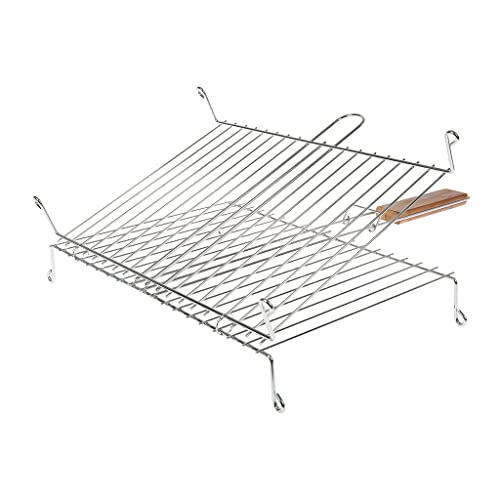 RUECAB 1089 Double barbecue réglable en acier inoxydable avec poignée en bois Argenté 6 x 33 x 69 cm