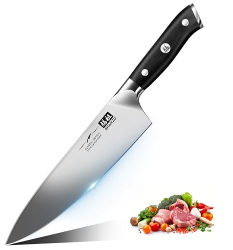SHAN ZU Couteau de Chef 20cm - Couteau de Cuisine Professionnel Couteau de Chef Professionnel Lame Ultra-fine en Acier Inoxydable Allemand et Poignée en Bois Antidérapante Confortable