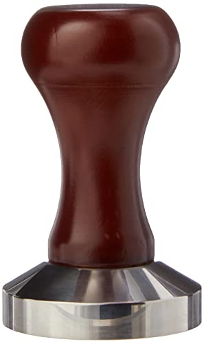 Café Olé Tamper en acier inoxydable dans le porte-filtre, équipement de barista pour café, S/S avec poignée en bois, 57 mm de diamètre, argenté