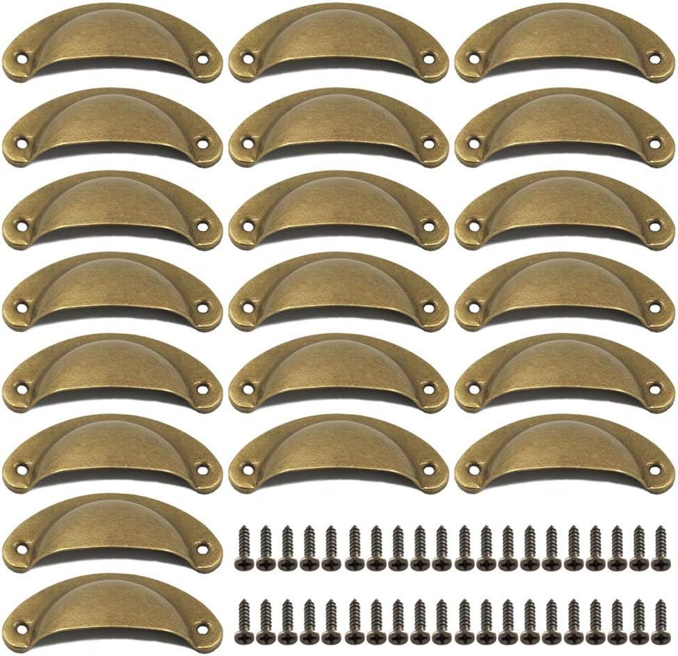 Poignée Coquille,Poignee de Meuble Vintage 20 Pièces Bouton de Porte Décoration Rétro pour Tiroir Armoire Meuble Cuisine,Avec 40 Vis Laiton Antique Poignee