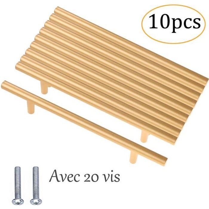 Lot de 6 poignées Or Poignee de Meuble Cuisine Or -poignées de placard Poigné e Meuble en Laiton Brossé Entraxe 128mm