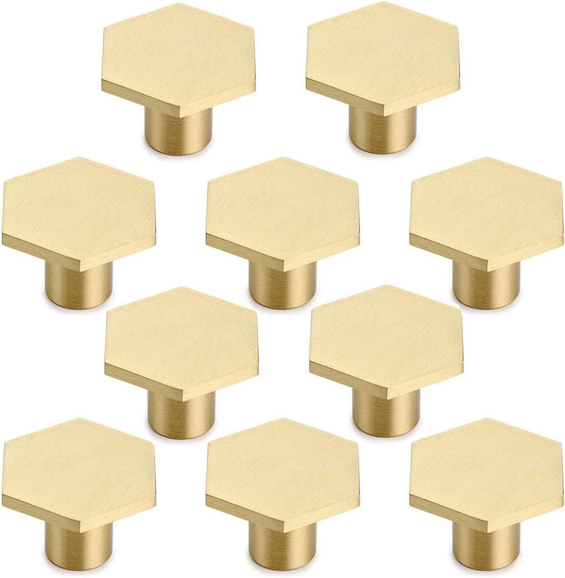 10 Pièces Bouton de Meuble Poignée de Meuble Cuisine Bouton de Porte en Laiton pour Placards Poignee Meuble Hexagone 30mm