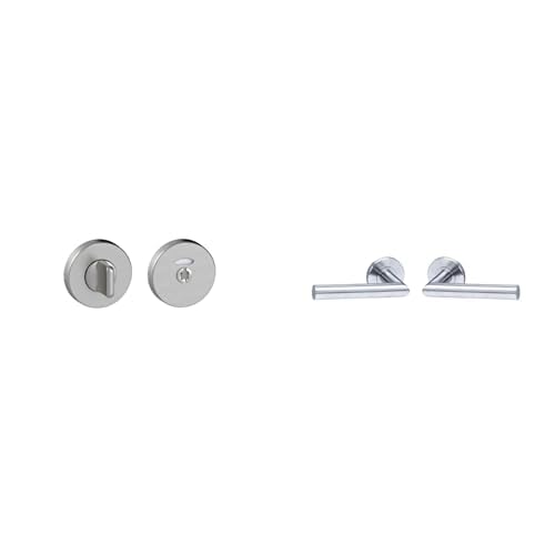 Vachette - Jeu de Rosaces Linox/Ovalis + Poignée de Porte LC3 - à Condamnation pour Porte de WC/Salle de Bain + Béquille sur Rosace Ronde Bec de Cane - Fixation Invisible - en Acier - Garantie 2 Ans