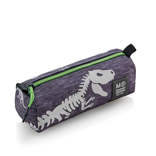 Miquelrius - Trousse Scolaire Ronde, Fermeture éclair en Plastique résistant, poignée métallique, Trousse de 205 x 60 x 75 mm, T-Rex, 205 x 60 x 75 mm, Porte-Documents Rond recyclé T-Rex