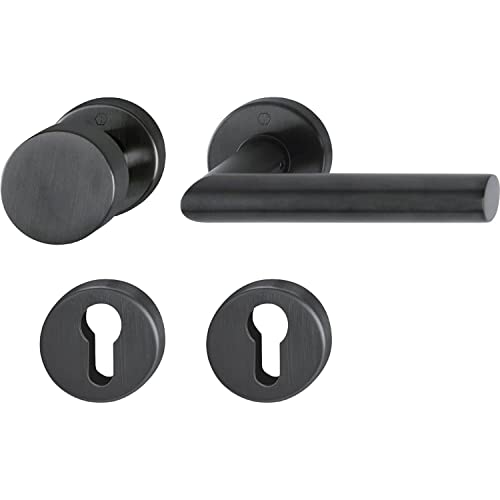 HOPPE Poignée de porte Amsterdam - Poignée de porte + bouton fixe sur rosace ronde PZ pour épaisseur de porte 40-45 mm, acier inoxydable noir mat