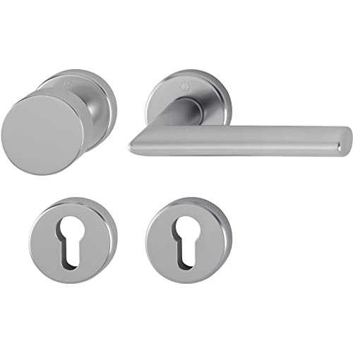 HOPPE Poignée de porte Stockholm - Poignée de porte + bouton fixe sur rosace ronde PZ - Pour épaisseur de porte de 37 à 47 mm - Effet aluminium et acier inoxydable
