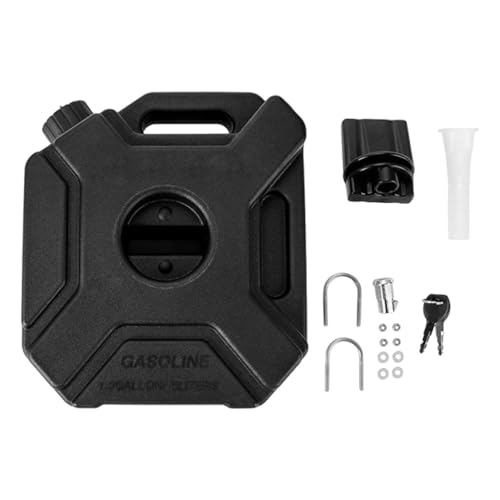 Fiocias Réservoir de Bidon à Carburant Réservoir D'Huile Portable Pratique avec Poignée Ergonomique et Clé Antivol PP Convenant Voiture VTT Séjour E, Noir, 5l