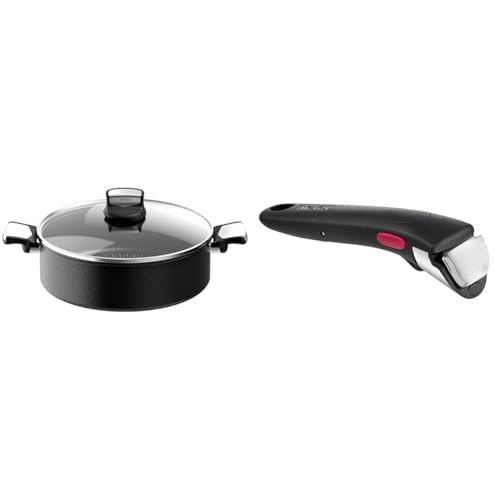 Tefal Ingenio Eco Resist Poêle profonde 26cm, Induction, Revêtement antiadhésif, Indicateur de démarrage de cuisson, L3978502 & Ingenio Poignée amovible noire, Verrouillage sécurité 3 points, L9863302