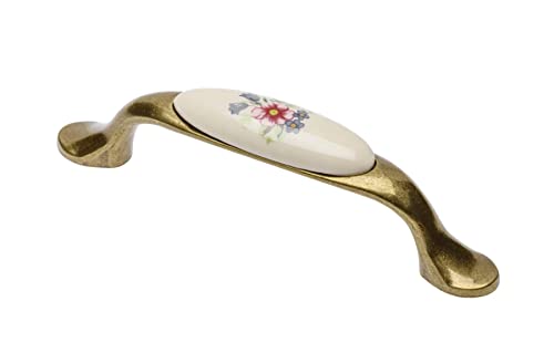 cyclingcolors 1x Poignée de meuble vintage zamak finition laiton foncé porcelaine motif fleur céramique entraxe 128 mm tiroir armoire avec vis