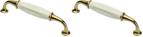 GTV Poignée de meuble ALATRI, espacement des trous 128 mm, zamak et porcelaine, surface en laiton vieilli (Lot de 2)