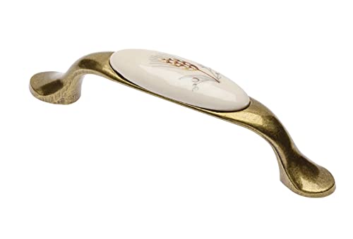 GTV Poignée de meuble 728P BA 96 mm Zamak et porcelaine Finition laiton vieilli Motif country