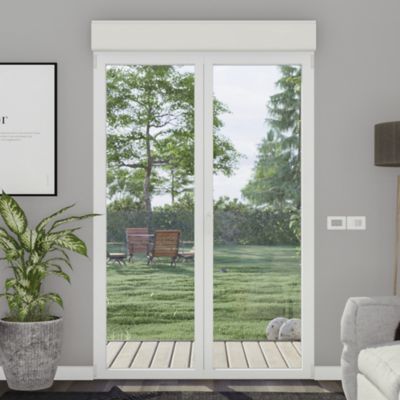 Porte fenêtre alu 2 vantaux + volet roulant électrique GoodHome blanc - l.140 x h.215 cm, tirant droit