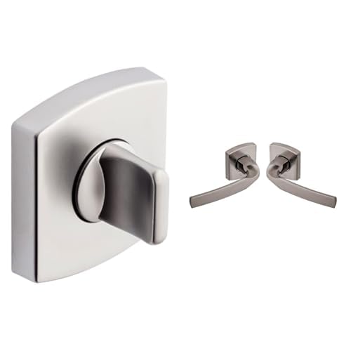 Vachette - Jeu de Rosaces Carrées MUZE, SCULT, ARTIS à Condamnation WC/SDB + Poignée de Porte MUZE Béquille/Rosace Carrée + Set Poignée de Fenêtre MUZE - Zamak/Alu - Chrome Velours - Garantie 5/10 Ans