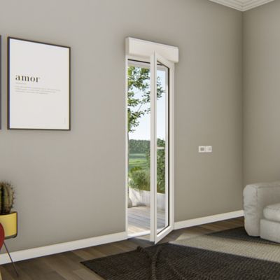 Porte fenêtre alu 1 vantail + volet roulant électrique GoodHome blanc - l.80 x h.215 cm, tirant droit