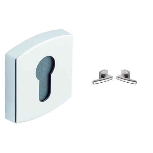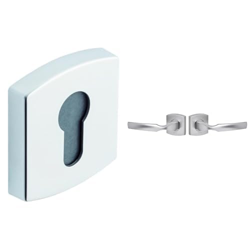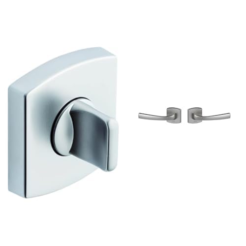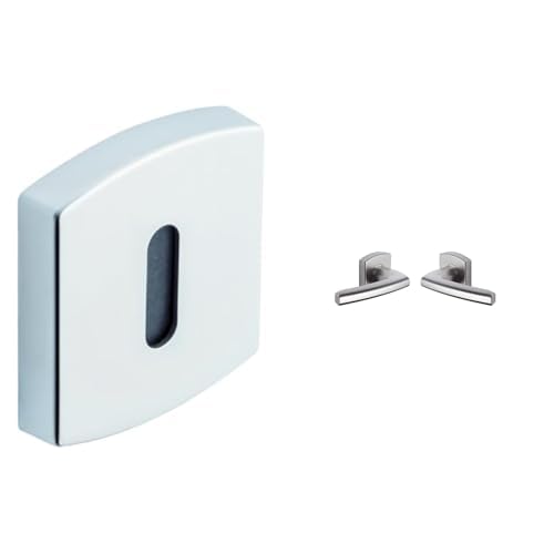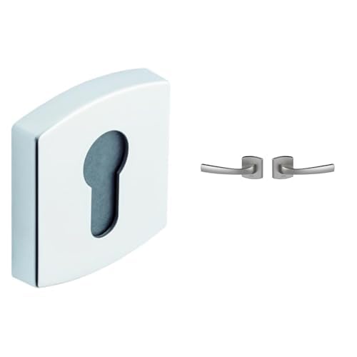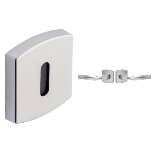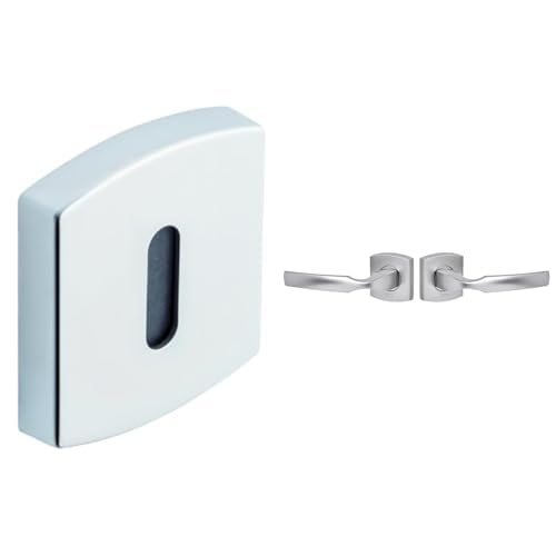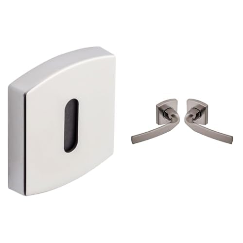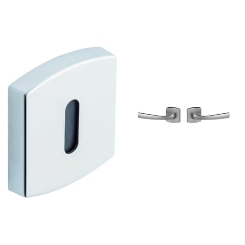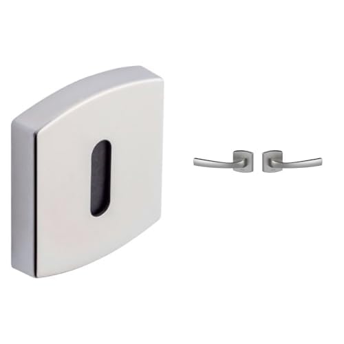 Vachette - Jeu de Rosaces Carrées MUZE, SCULT, ARTIS à Condamnation WC/SDB + Poignée de Porte MUZE Béquille/Rosace Carrée + Set Poignée de Fenêtre MUZE - Zamak/Alu - Chrome Velours - Garantie 5/10 Ans