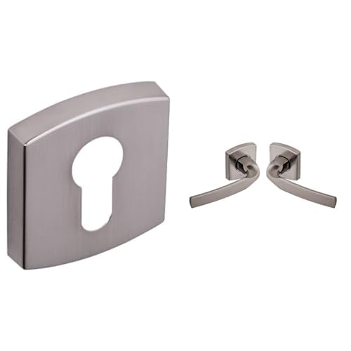Vachette - Jeu de Rosaces Carrées + Poignée de Porte MUZE + Set de Poignée de Fenêtre - Clé I Porte d'Entrée à Cylindre + Béquille/Rosace Carrée Solidarisées + Indexage à 90° - Garantie 5/10 Ans