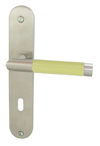 DT 2000 337630 Demi poignée de porte sur plaque cigarillo porcelaine Jaune inox mat serrure