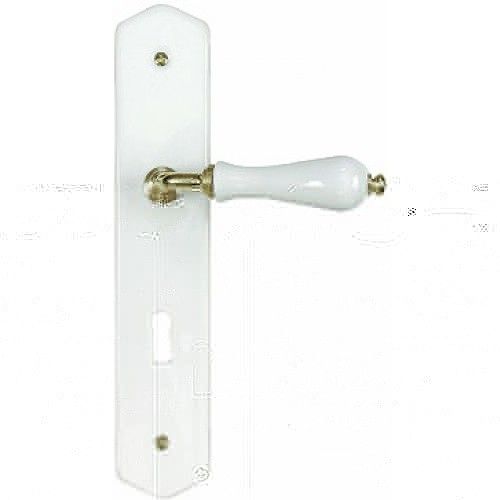 Alpertec 32218473 Nany-R Poignée de porte en porcelaine blanche laiton poli PZ Poignée de porte pour portes d'entrée d'appartement Poignée des deux côtés