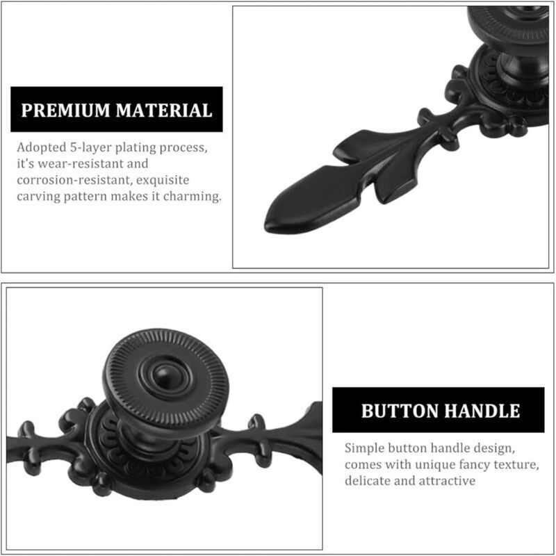 4 Pièces Boutons de Porte Poignée Style Vintage, Poignée D'armoire Rétro en Aluminium Noir, pour Portes de Garde-robe Simples et
