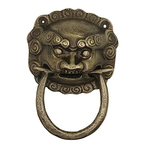UZAMIRLEX Heurtoir de Porte, Poignée de Porte Vintage en Bronze, Anneau de Porte en Forme de Visage d'animal for Porte d'entrée/Porte de Cour, Accessoires de décoration(Brass,10cm)