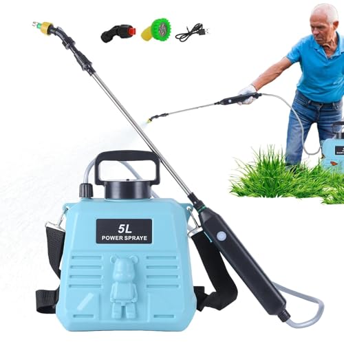 Pulvérisateur Électrique 5L pour Jardin, avec 3 Buses Réglables, Rechargeable par USB et Poignée Télescopique, Pulverisateur a Pression pour Arrosage Désherbage Cour (Bleu)