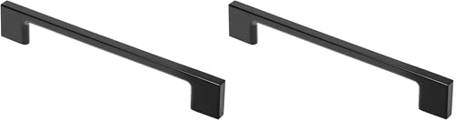 GTV Poignée de Meuble Rectangulaire UZ-819, Entraxe 192 mm, Longueur 225 mm, en Alliage de Zinc-Aluminium (ZnAl), Vis Incluses, pour Cuisine et Tiroir, Finition Noire
