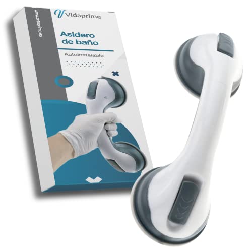 VidaPrime Poignée de Sécurité pour Salle de Bain Auto-Installable - Poignée de salle de bain Ventouse FORTE - Poignée de Douche pour Personnes âgées - Barre de douche INSTALLATION FACILE 30cm