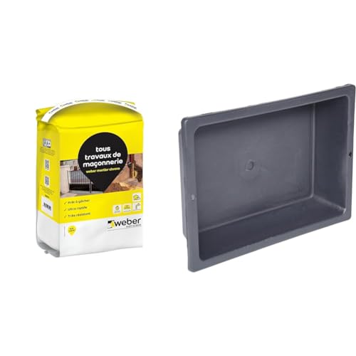 Mortier de maçonnerie ultra-rapide, 5kg, WEBER MORTIER CHRONO, WEBER & Bac à Mortier Béton en Plastique Noir - Auge de Maçon Sans Poignée - 3L - 310x210x70