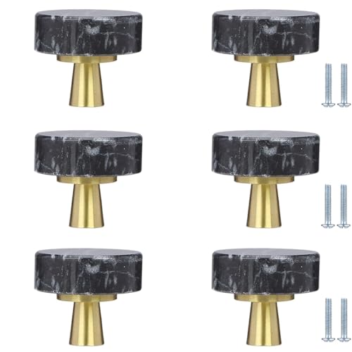 Poignées de Tiroir de Cuisine Lot de 6 Boutons Ronds en Marbre de 30 mm Poignées de Meubles en Laiton Boutons en Pierre pour Tiroirs de Commode Caves à Vin Décoration Intérieure (Couleurs Noir Et GR
