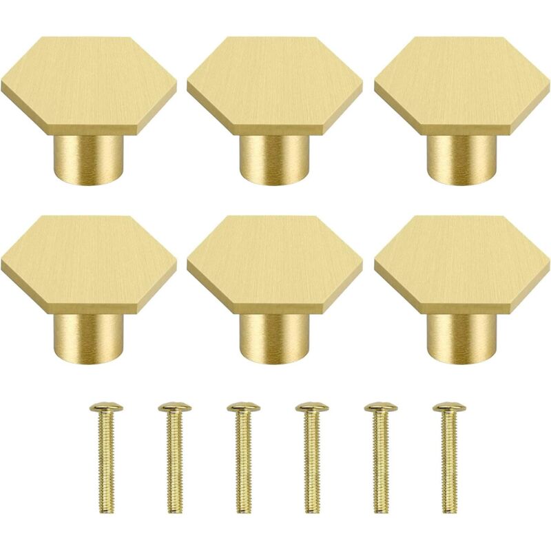 Boutons et poignées de meubles,6PCS Poignée de Porte en Laiton Massif Boutons de Porte Hexagonaux Avec Vis Accessoire pour Cuisine Salon Chambre