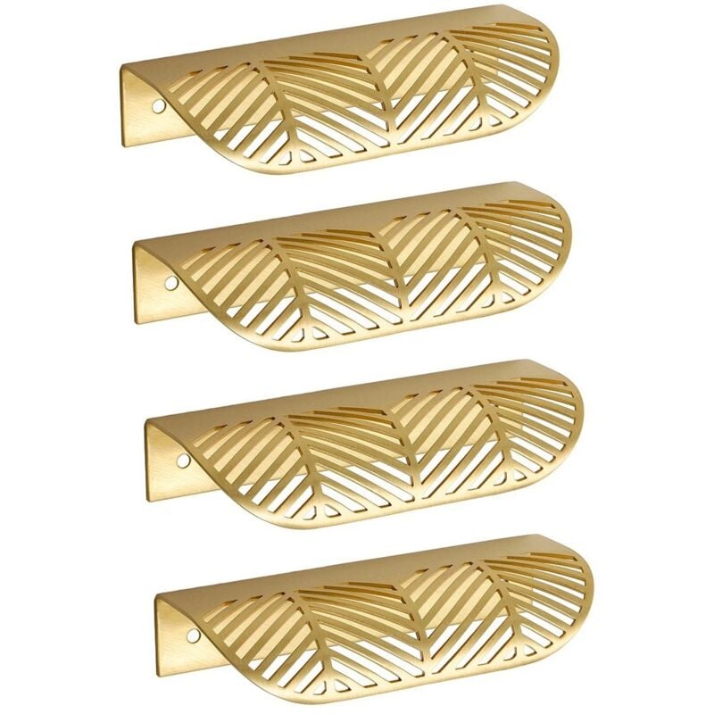 Ensemble de 4 poignées de meubles en laiton doré en forme de feuille, pour placards, armoires et meubles de cuisine.Doré