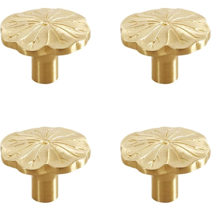 Lot de 4 poignées d'armoire en forme de fleur avec vis de montage, poignées de meubles en laiton doré, boutons d'armoire dorés, pour chambre, salle