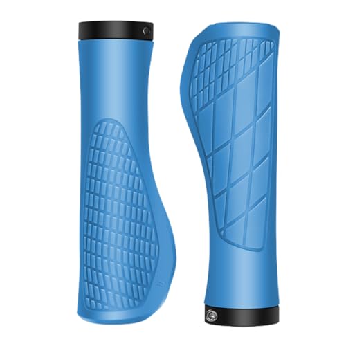 LORESJOY Poignées de Vélo MTB en Caoutchouc, 2 Pièces Protecteur de Guidon de Vélo, Souple Antidérapant, Ergonomique, avec Capuchons aux Extrémités - pour Vélo de Montagne/Route/VTT (Bleu)