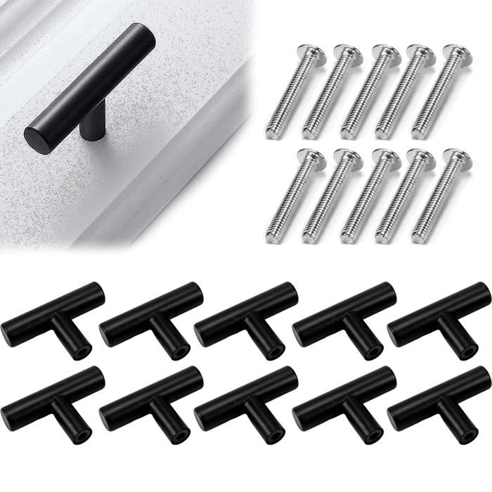 NHP Bouton de Meuble,Poignée Meuble,Poignet de Porte Cuisine,Poignee de Meuble,Poignée de Portes pour Placards en Acier Inoxydable 10 Pièces Noir Bouton de Tiroir Vintage pour Commode,Armoire