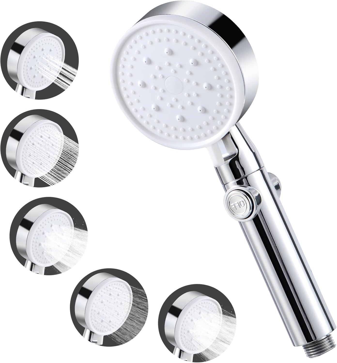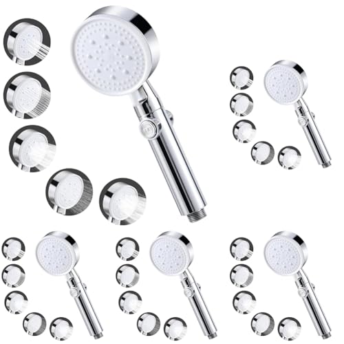 Vinabo Pommeau de Douche Haute Pression, Pommeau de Douche Économie d'eau 5 Modes Réglable,Poire de Douche Salle de Bain avec Arret, Pomme de Douche Haute Pression (Lot de 5)