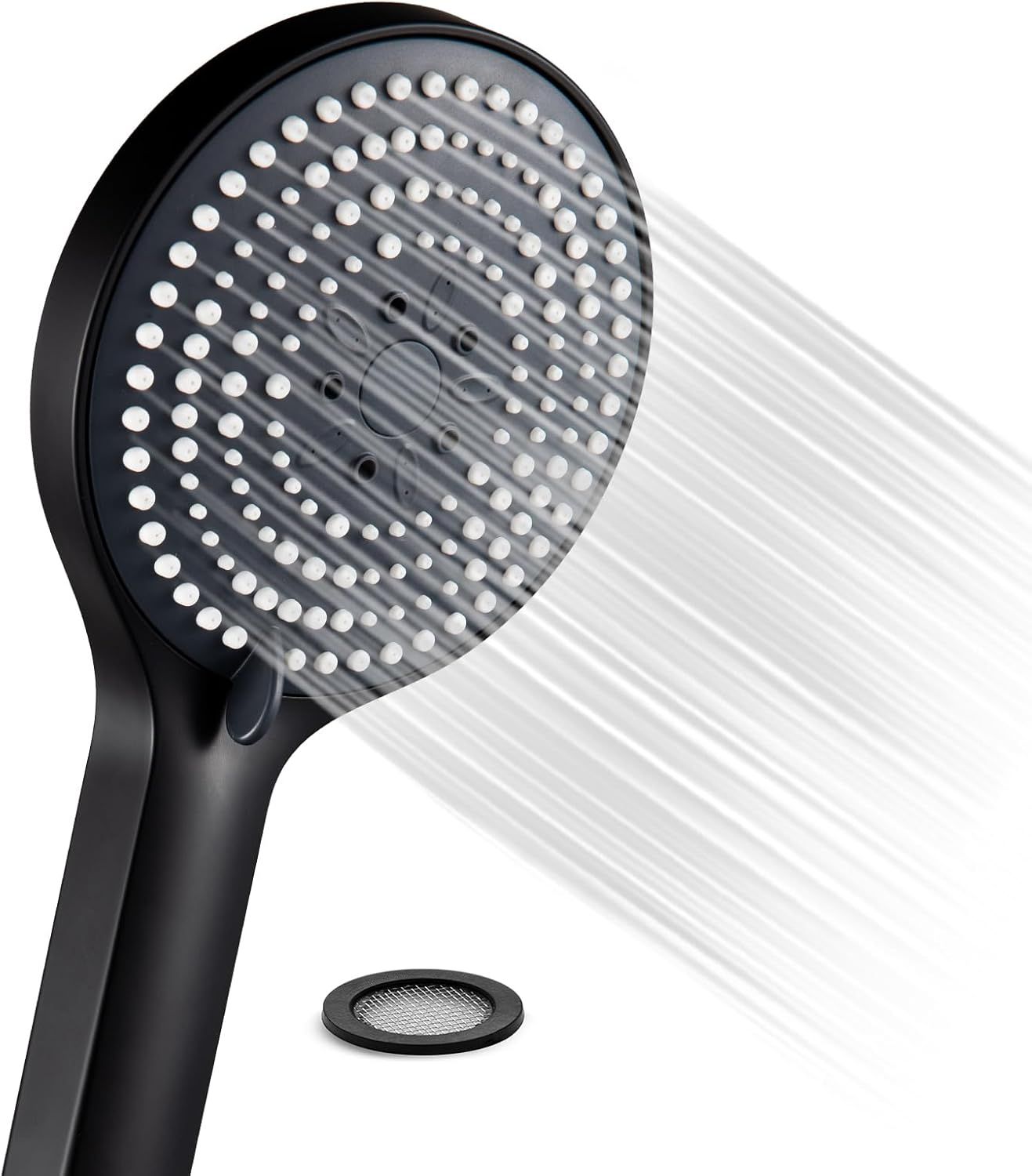 JGD-Pommeau de Douche,Douchette,Avec 6 modes de massage pulvérisation,Pommeau de Douche économie d'eau,Tête de Douche,Poire de Douche,Grande xxl(¿130mm),Noir Mat