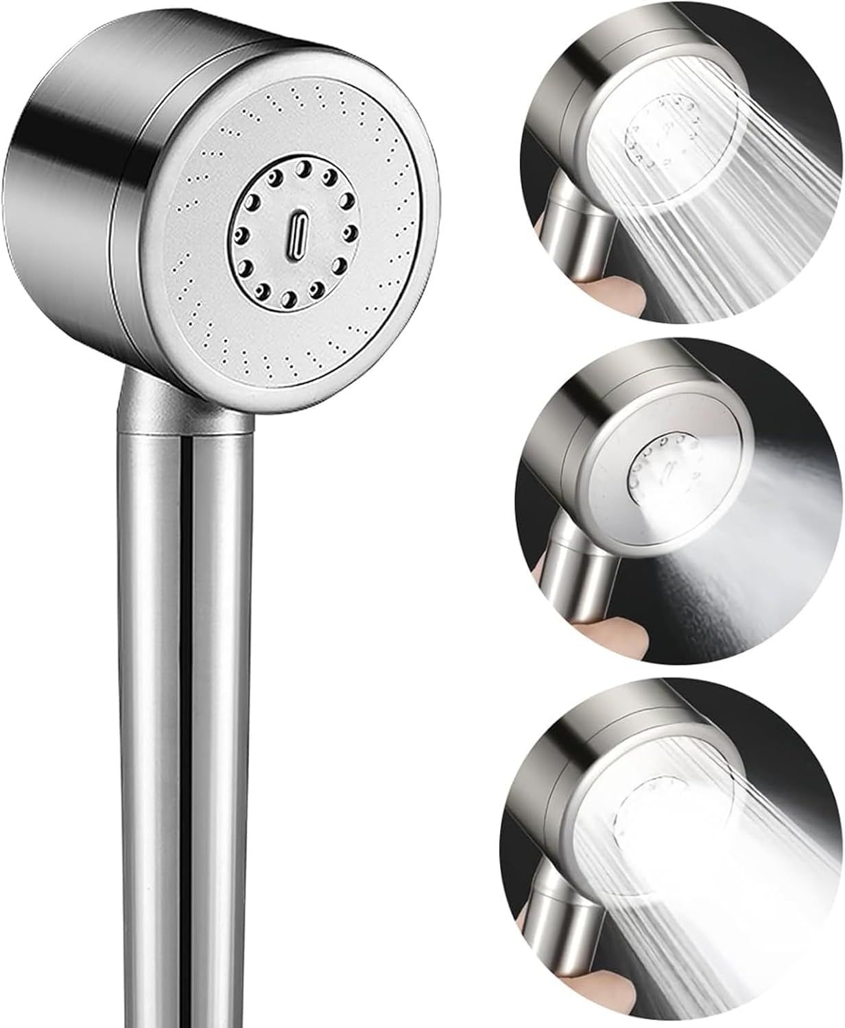 JGD-Pommeau de Douche Haute Pression en Acier Inoxydable 304, Pommeau de Douche Anti Calcaire Douchette Poire de Douche et Douches à Main, Economie Deau 3 Types Gris